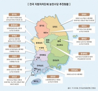 전라남도는 2020년부터 농민 공익수당이라는 이름으로 사실상 농민 기본 소득을 시행하고 있다. 도내 농업에 종사하는 농민에게 연 60만 원을 지역화폐로 지급하며, 농촌 지역경제 활성화 효과도 거두고 있다.