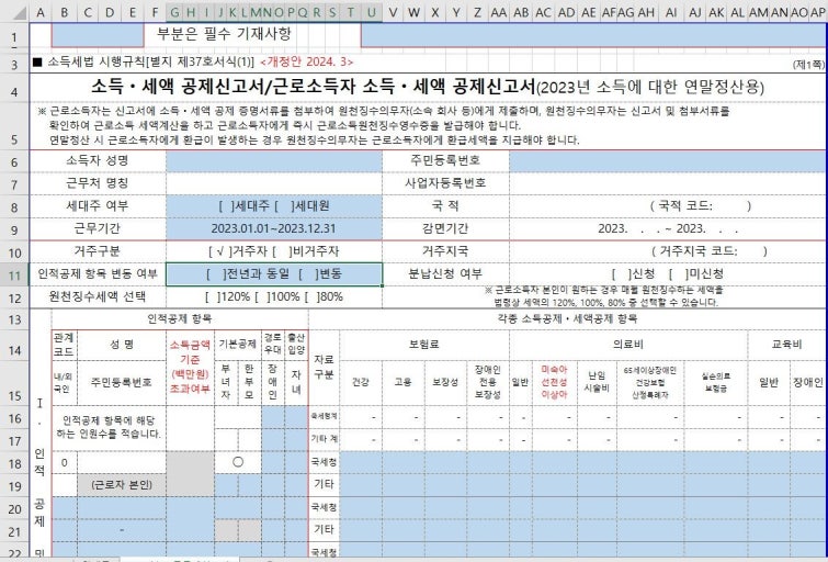 - 인적사항, 가족정보, 각종 공제항목 기재란 모두 누락 없이 입력