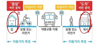 즉, 대중교통을 이용하기 전후에 걸은 거리가 많을수록 더 많은 마일리지를 적립할 수 있습니다!