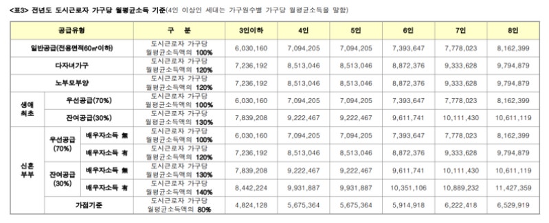 - 소득 기준은 대부분 세전 소득 기준입니다.