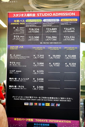 - 스튜디오 패스(Studio Pass): 기본 입장권. 날짜 지정 1일권 또는 2일권