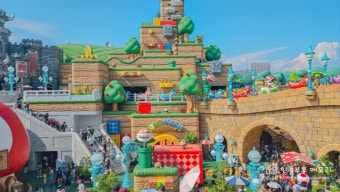 마리오와 친구들의 세계를 체험할 수 있는 이 에어리어는 '마리오 카트: 쿠파의 도전장'과 '요시 어드벤처'와 같은 어트랙션이 있습니다. 또한 파워업 밴드를 활용한 다양한 미니게임도 즐길 수 있습니다.