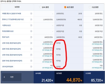 보험 상품은 대부분 저렴한 기본형, 중간형, 프리미엄형 등으로 구성되어 있습니다. 그 차이는 주로 보장 한도와 면책사항에 있어요.