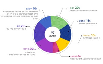 그 외에도 정부는 사회적 배려가 필요한 계층에게 다양한 특별공급을 운영하고 있습니다. 그중 대표적인 것이 다자녀가구와 노부모 부양자입니다.