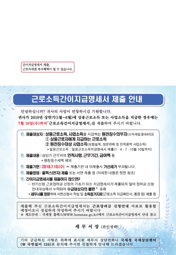 특히 반복적인 미제출은 국세청의 경고 또는 지속적인 세무조사로 이어질 수 있으므로, 어떤 경우에도 기한 내에 제출하는 것이 원칙입니다. 실수로 제출하지 못했을 경우에는 최대한 빠르게 지연 제출하고, 사실관계를 입증할 수 있는 관련 자료를 함께 첨부하는 것이 좋습니다.