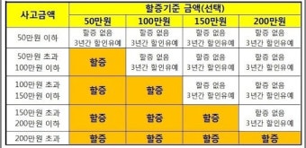 다음의 표는 일반적인 보험 할증 예시를 보여줍니다: