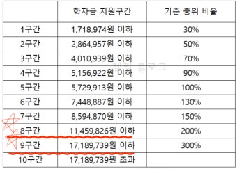 구간별 소득 범위 예시