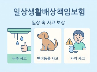 누수가 발생해 아랫집 천장이 젖고 가전제품이 망가지면, 수리비, 복구비, 정신적 손해보상 등 수백만 원의 손해배상을 요구받을 수 있습니다. 이때 일상생활배상책임보험이 있으면 보상 한도 내에서 보험사가 그 비용을 대신 부담해 주므로, 개인이 부담해야 할 리스크를 크게 줄일 수 있습니다.