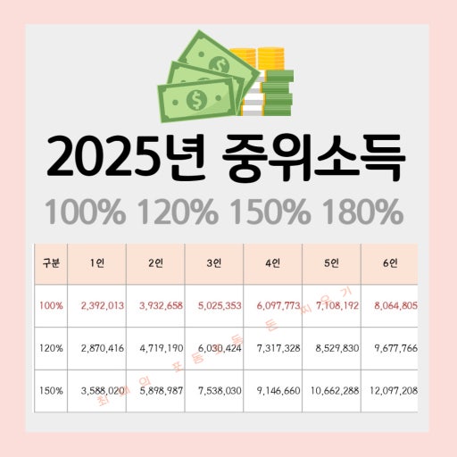 - 2025년 중위소득 상승률: 약 6.42% (4인 가구 기준)